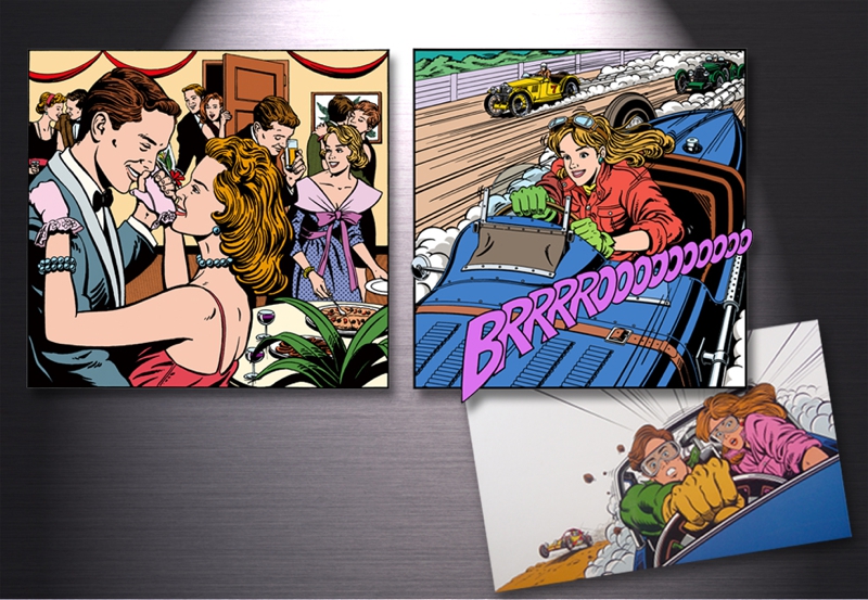 構図、線の強弱、カラーリング等でスピード、空間、パワーを表現します。