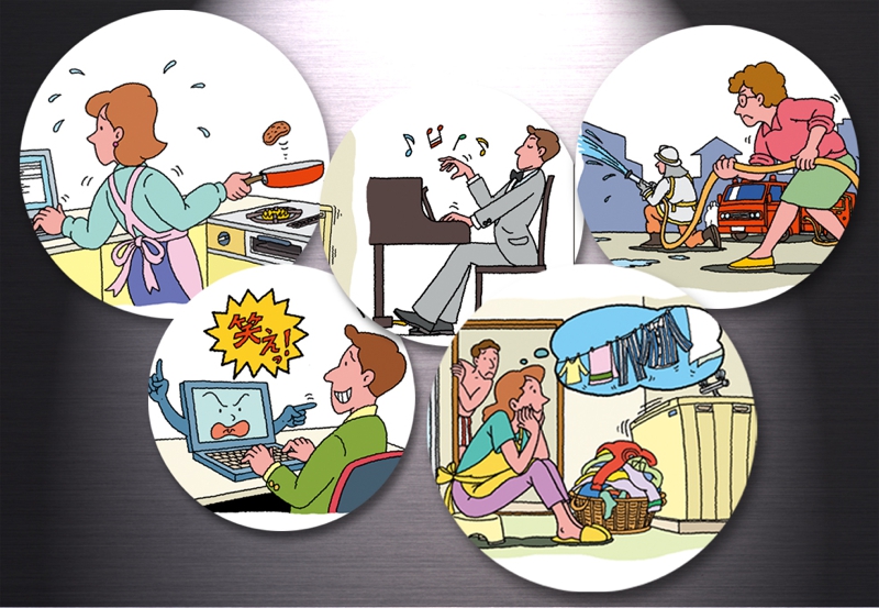 与えられたスペースの中で文章の内容をいかに的確に表現するか、そして見る人の顔がほころぶようなイラストを心がけています。